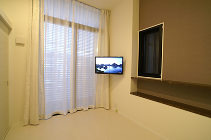 寝室に32インチテレビをWアーム式壁掛金具を使ってコーナーに設置しました。