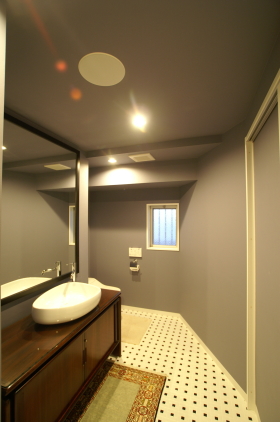 洗面に、ZONE2のアンプを使って天井埋め込みスピーカーを取付けました。