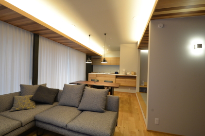 新築リビングルームに、75インチ液晶テレビを壁掛けしました